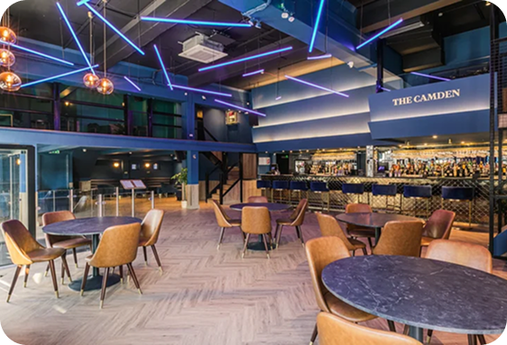 The Camden offers flexible space for corporate networking events and presentations near Camden Town station. Suitable for theater-style setups and business meetings up to 60 guests.